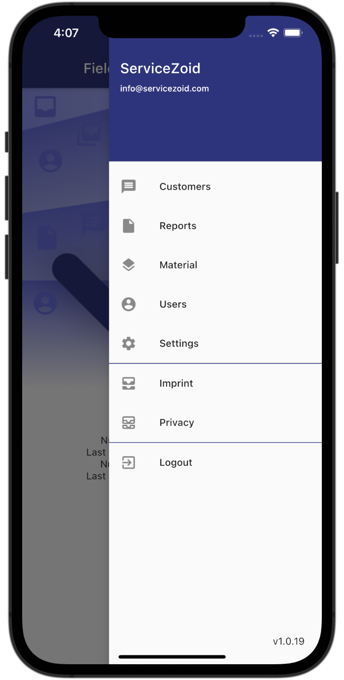 Customers and material can easily be imported to ServiceZoid app using a CSV-File from other applications.